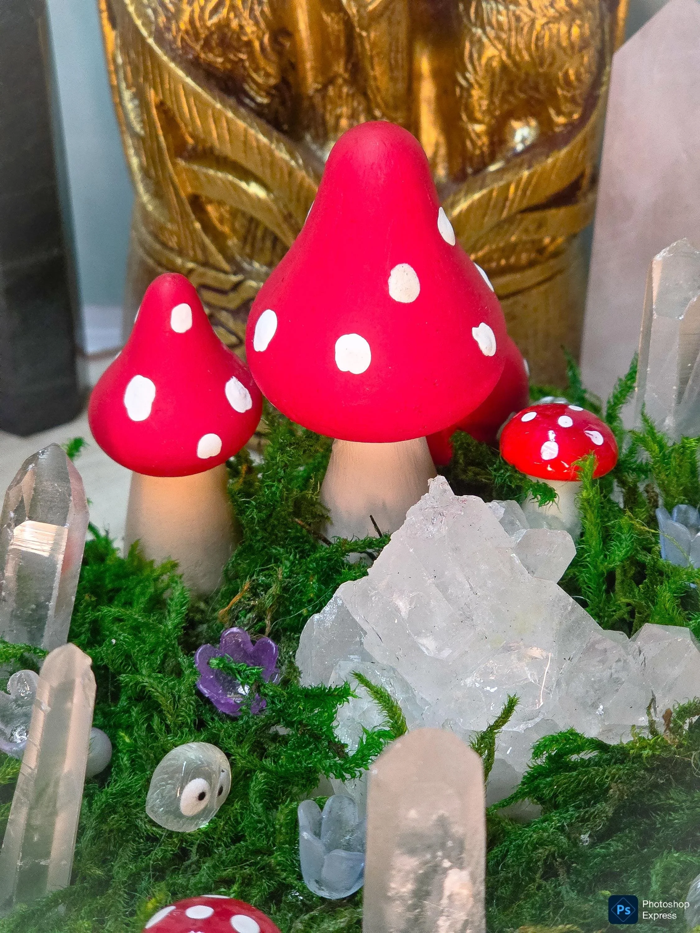 Fairy Mushroom Garden | Quartz Crystal, Real Moss on Wood Slice