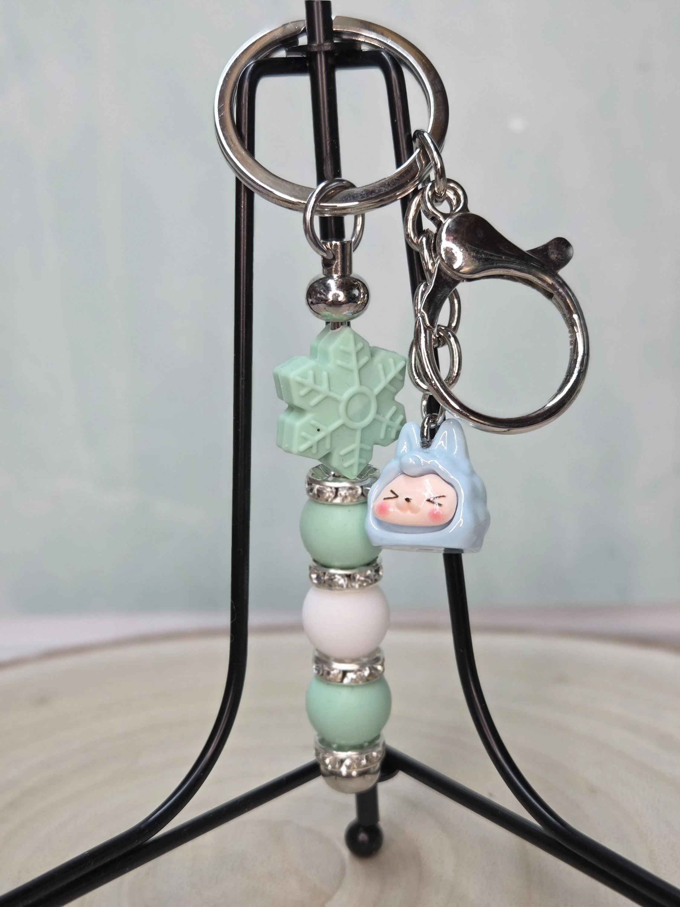 Each keychain is one-of-a-kind due to handmade charm and bead variations.